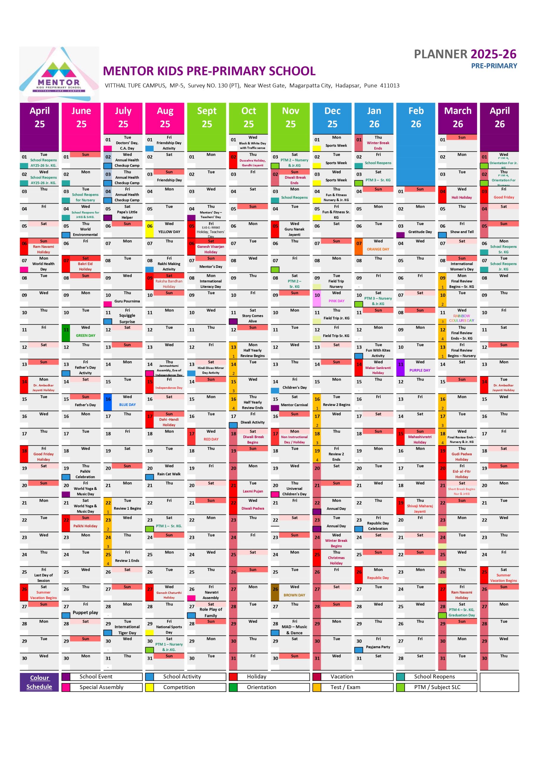 Planner 2025-26 for Pre-Primary